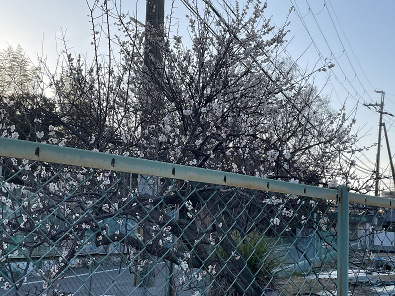 家の前の畑の小梅が小さい可愛い花を咲かせ、メジロ?鶯?が枝に居てたけど撮れなかった…