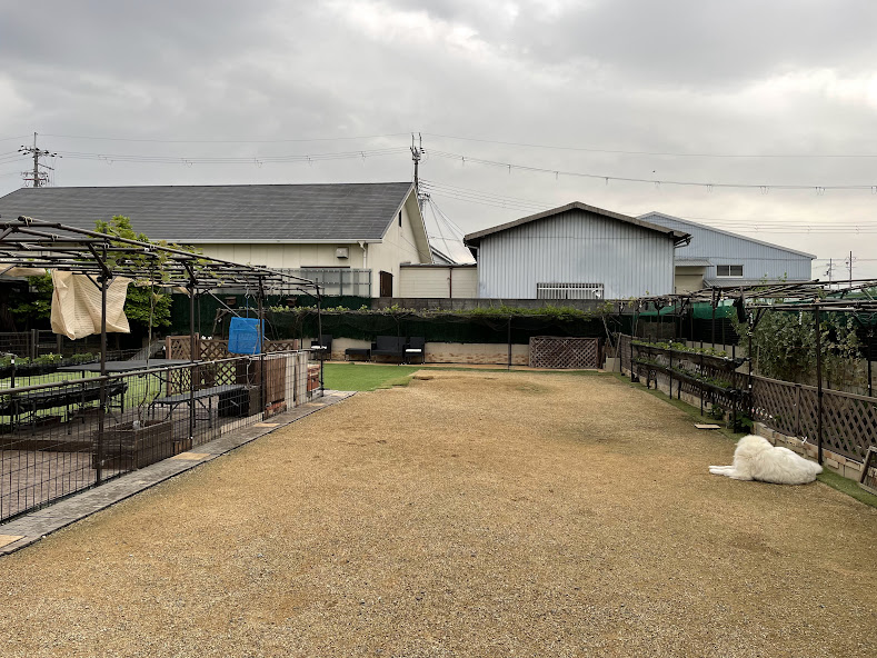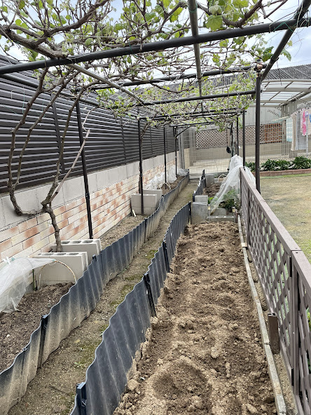陰になる部分が少ないので、日陰を作る為に葡萄棚を作って
