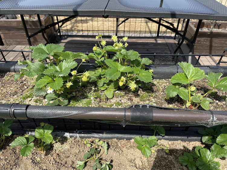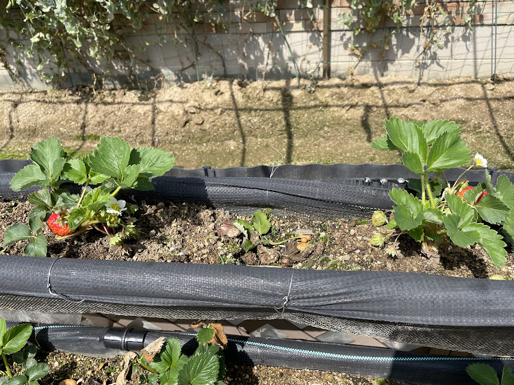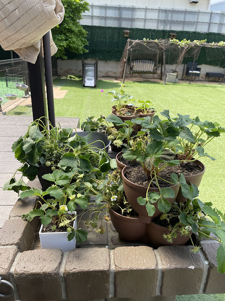 苺🍓も実が赤くなってきて、女子軍団は🍓大好きだから採りたてを食べてるよ。