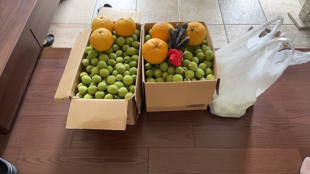 沢山の梅をいただいて、ニンニクや甘夏も収穫していただいて